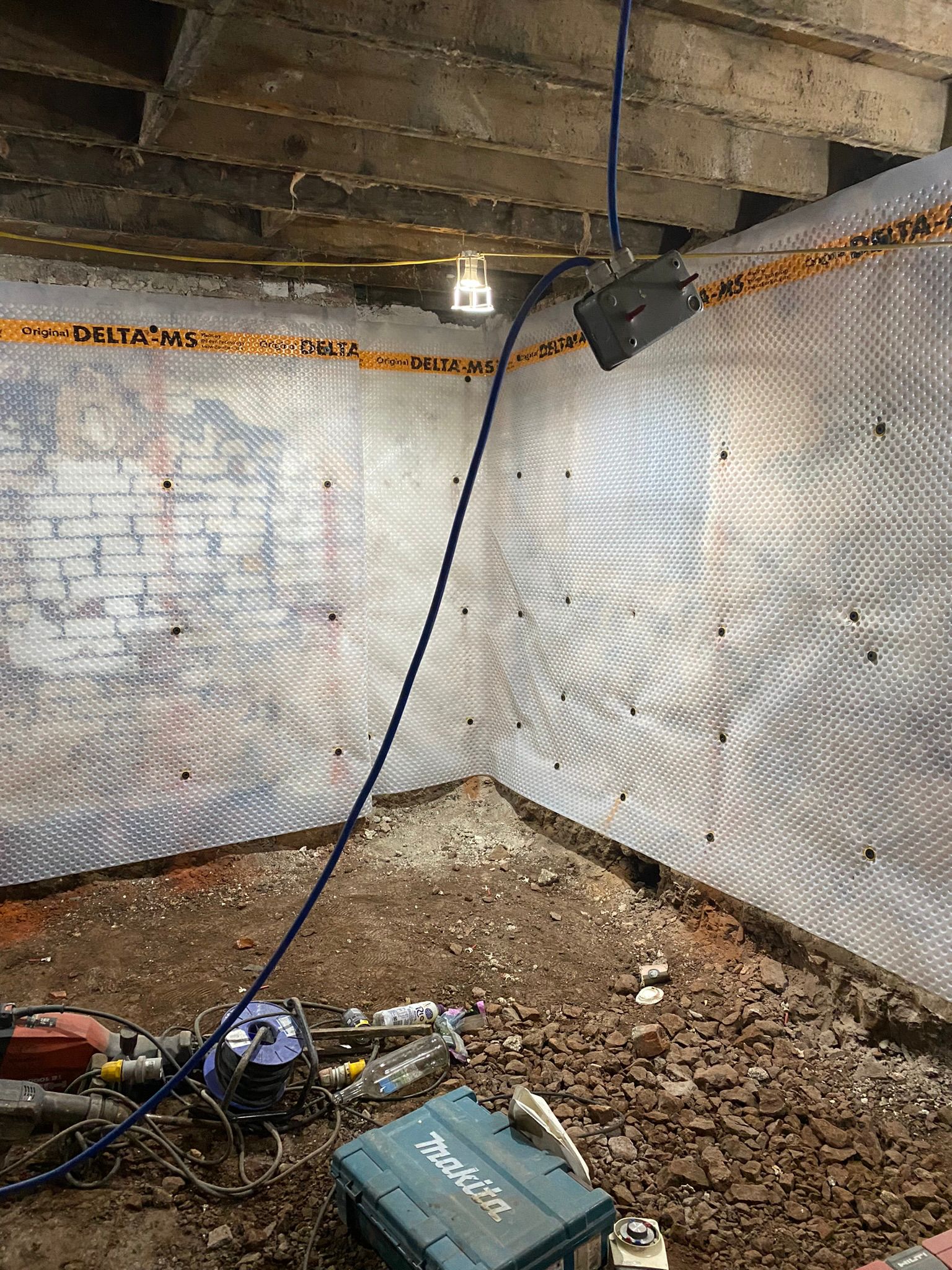 Damp and water on walls and floors can lead to serious issues like structural damage, mould growth, and poor indoor air quality. This is often caused by moisture penetrating the property due to poor drainage, leaks, or high humidity levels. At Blue Water Design and Construction Ltd, we specialise in identifying and addressing the root causes of damp and water ingress. Our expert team with over 20 years experience, offers effective damp-proofing solutions, including specialist membranes, to protect your home.